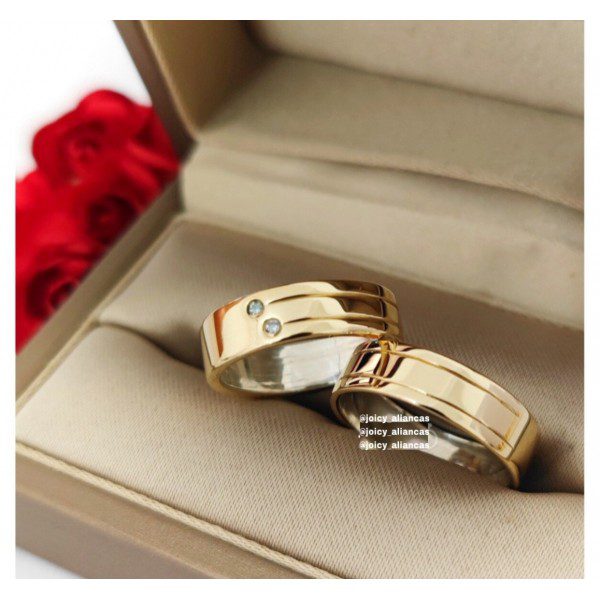 Um modelo sofisticado e confortável, ideal para simbolizar momentos especiais. O Modelo Laiana traz um design equilibrado entre elegância e modernidade, com um acabamento refinado e um toque delicado de brilho na aliança feminina.