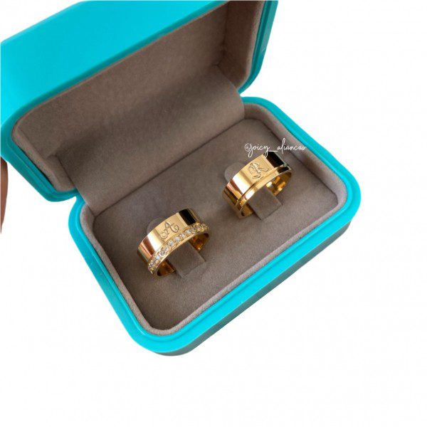 O Modelo Camily combina sofisticação e exclusividade em um design elegante e moderno. Feito para casais que buscam alianças com um toque especial, esse par traz a opção de personalização com iniciais gravadas, tornando cada peça única e exclusiva.