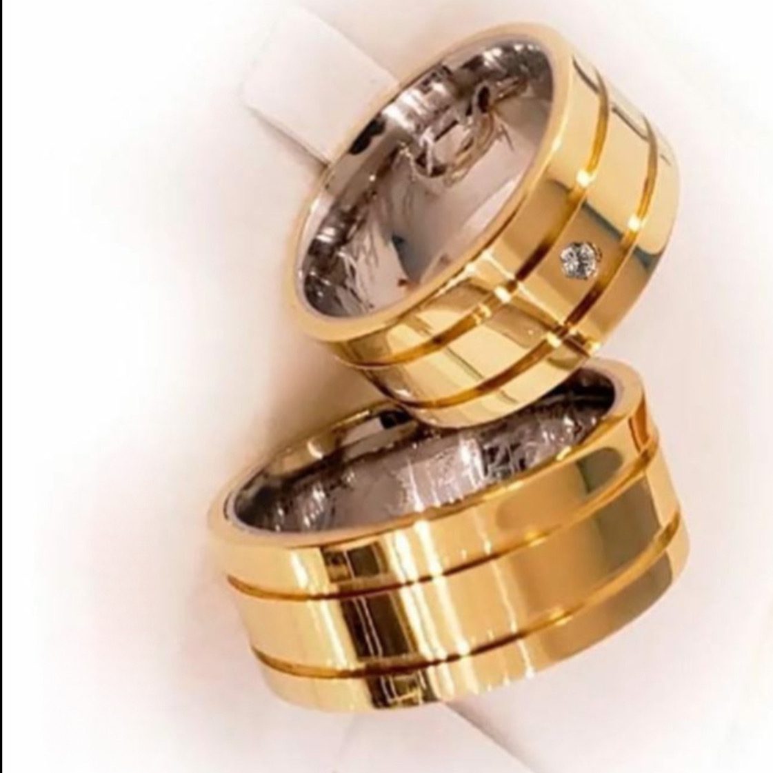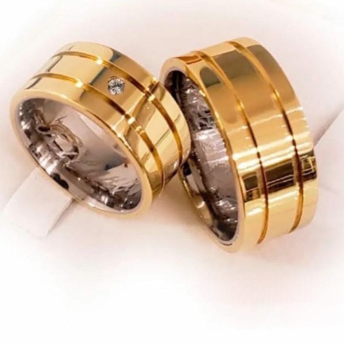 Alianças de Casamento 9mm | Modelo Lorena | 2 Frisos Laterais | Feminina com 1 Pedra de Zircônia