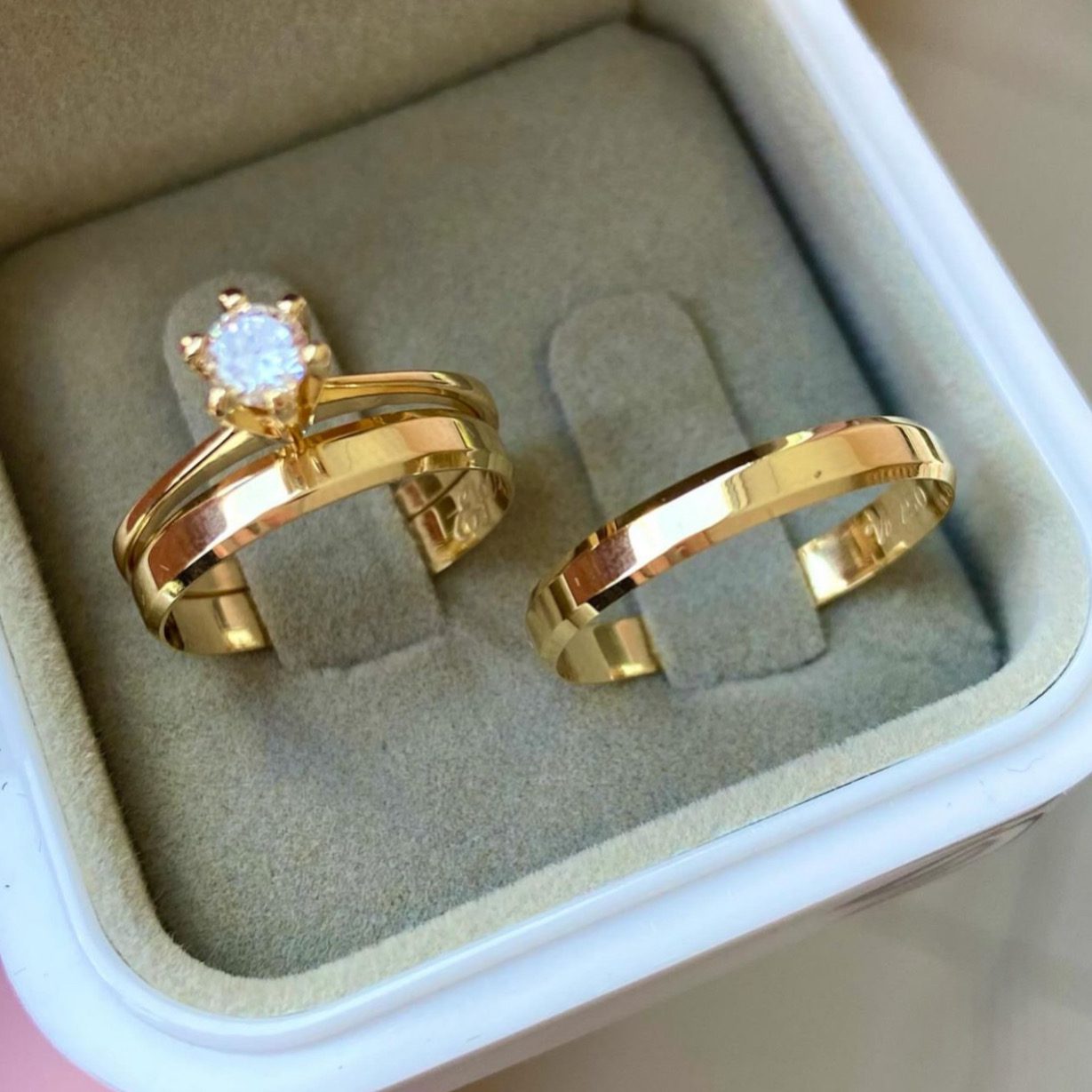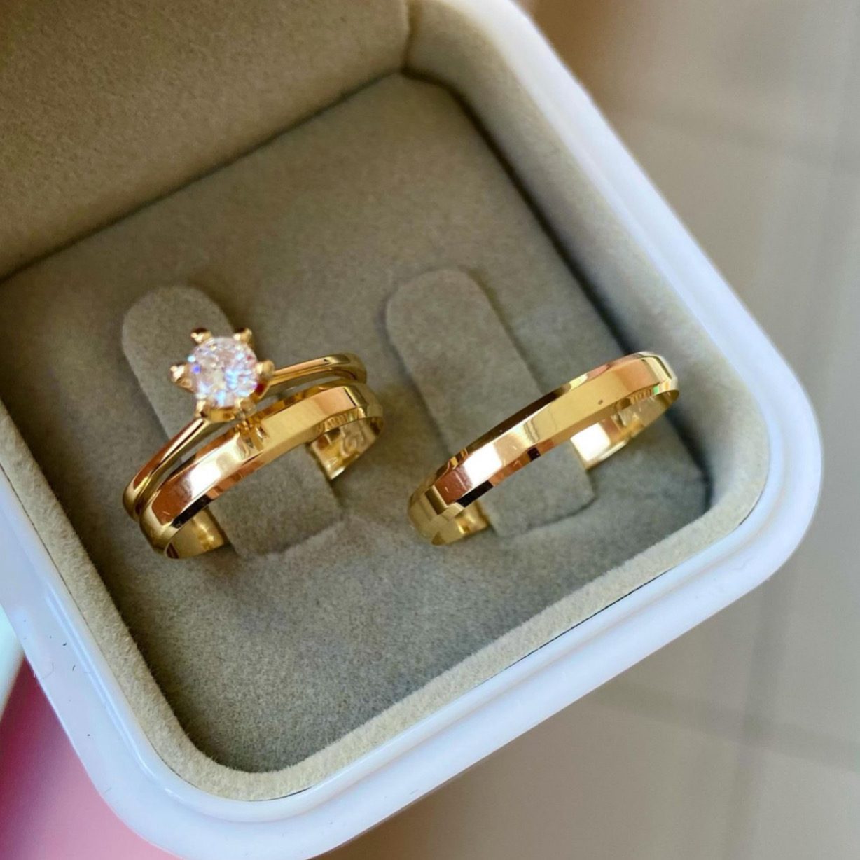 Alianças de Casamento 3mm | Finas Chanfradas | Moeda Antiga Banhada a Ouro 18k