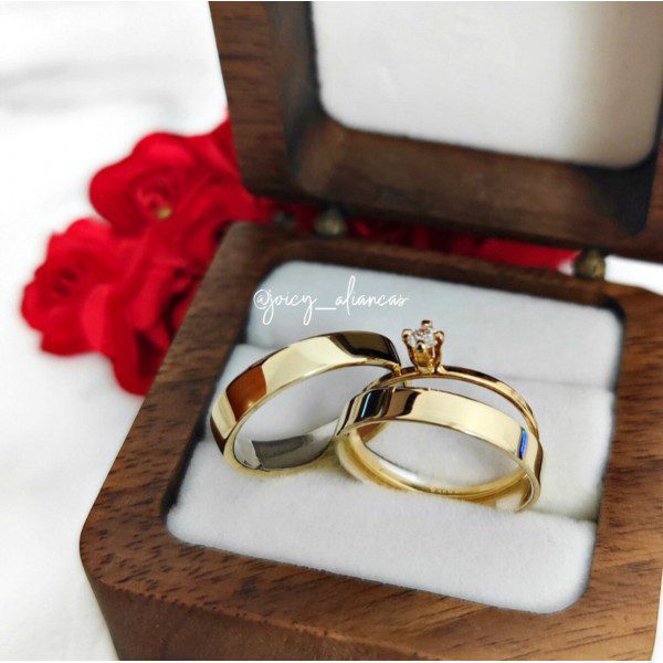 Alianças de Casamento 4mm | Modelo Dayana 02 | Moedas Antigas | Anatômico – Forro Antialérgico Opcional + Anel Solitário Semelhante Opcional