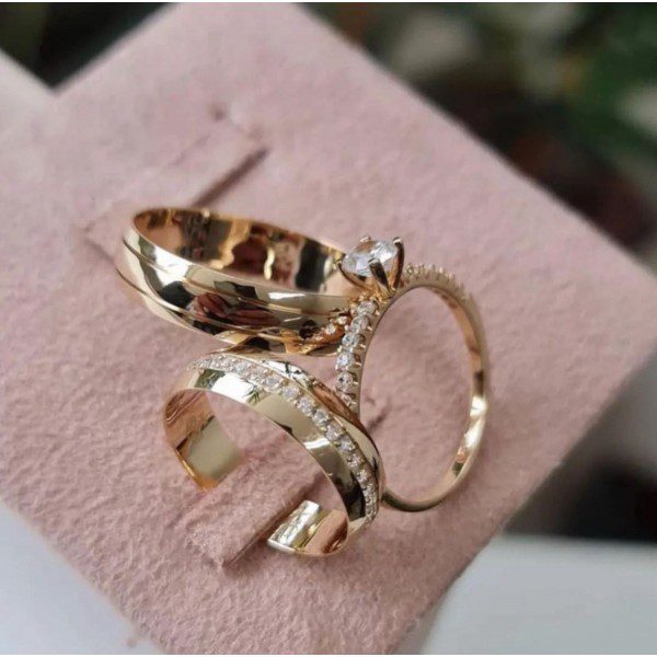 Alianças de Casamento 6mm | Modelo Lanna | Feminina com 15 Pedras de Zircônia | Banhado a Ouro 18k