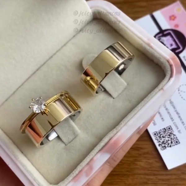 • Oferecemos a opção de gravação no par de alianças. No entanto, pedimos que verifique atentamente os tamanhos antes de solicitar a gravação, pois, em caso de troca devido ao tamanho, a gravação impede a devolução ou troca do produto.