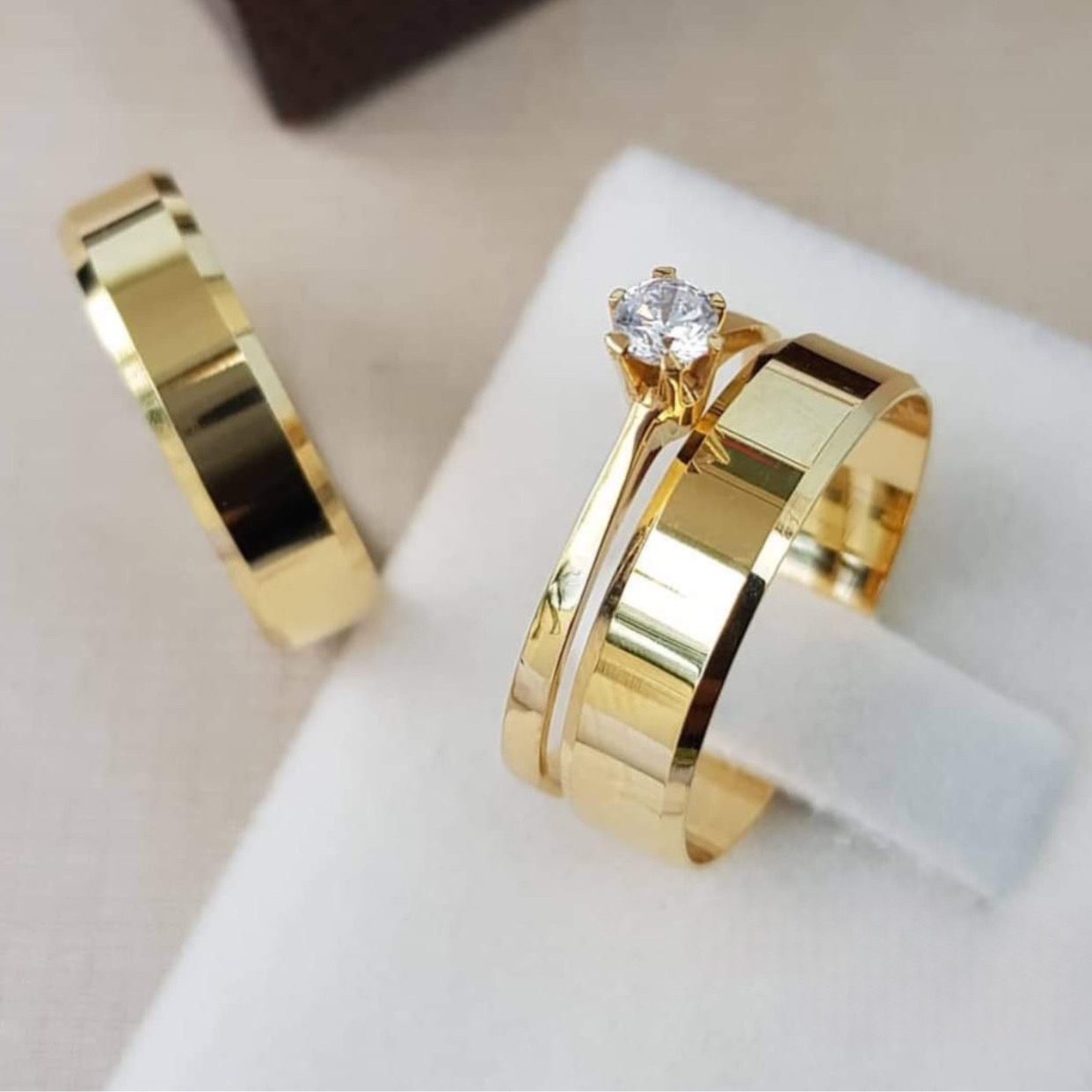 Elegância e sofisticação definem o modelo chanfrado de 6mm, um dos favoritos entre nossos clientes. Seu acabamento impecável realça o brilho do banho de ouro 18k, proporcionando um visual luxuoso e atemporal. Confeccionadas em moeda antiga, essas alianças garantem resistência e durabilidade, tornando-se a escolha ideal para simbolizar momentos especiais. Para um conjunto ainda mais completo, há a opção de adicionar um anel complementar.