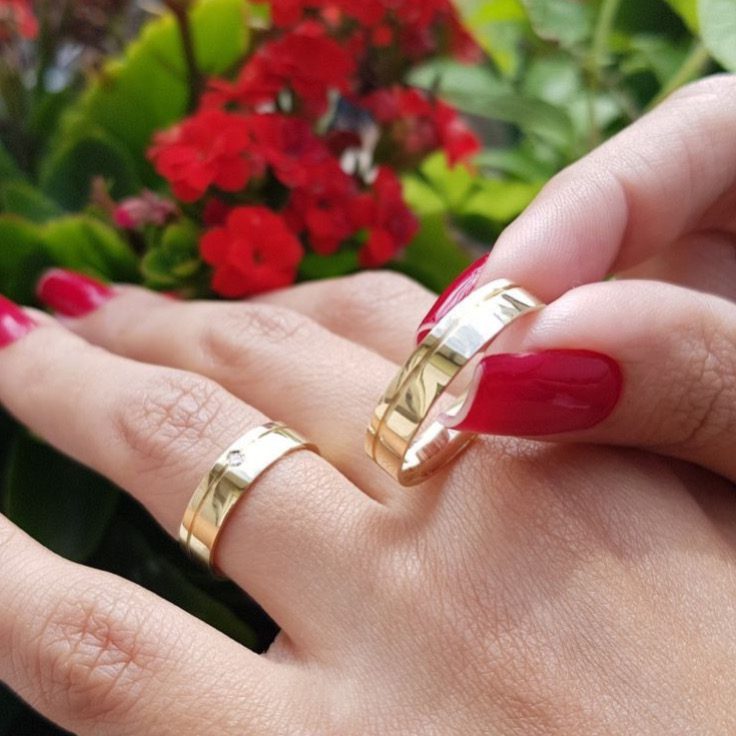 Este par de alianças foi cuidadosamente confeccionado a partir de moedas antigas, proporcionando um design único e sofisticado. Com 5mm de largura e friso lateral, as alianças são banhadas a ouro 18k, garantindo durabilidade e brilho. A peça feminina é adornada com uma pedra de zircônia no friso, adicionando um toque de elegância.