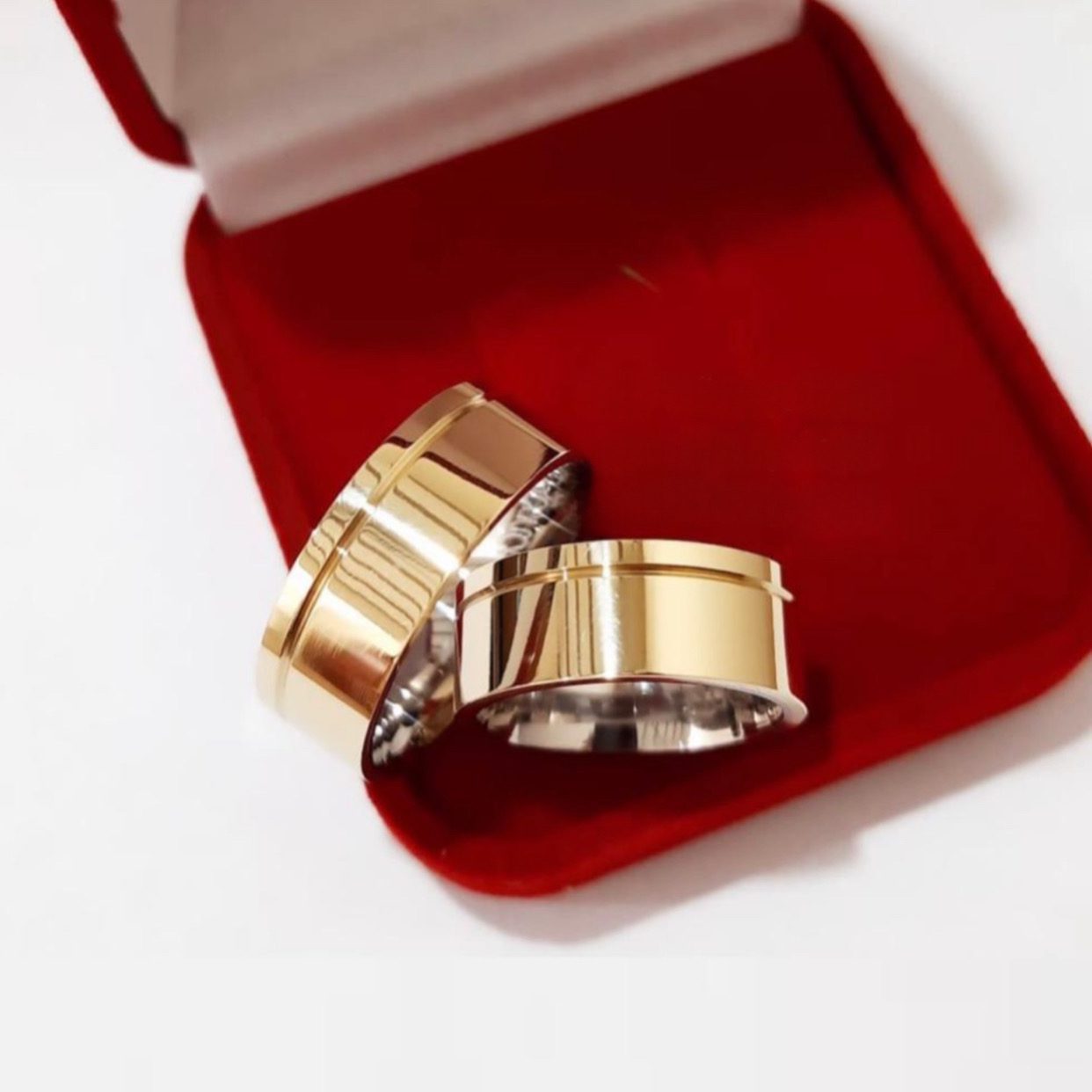 O Par de Alianças Modelo Clássico combina elegância e sofisticação em um design atemporal. Com 8mm de largura, apresenta um friso lateral que destaca seu brilho e acabamento polido. Feitas em moeda antiga e banhadas a ouro 18k, essas alianças possuem um acabamento anatômico, garantindo conforto e resistência. Além disso, o revestimento de aço cirúrgico é uma opção disponível para maior durabilidade e proteção, tornando-as ideais para simbolizar o amor eterno.