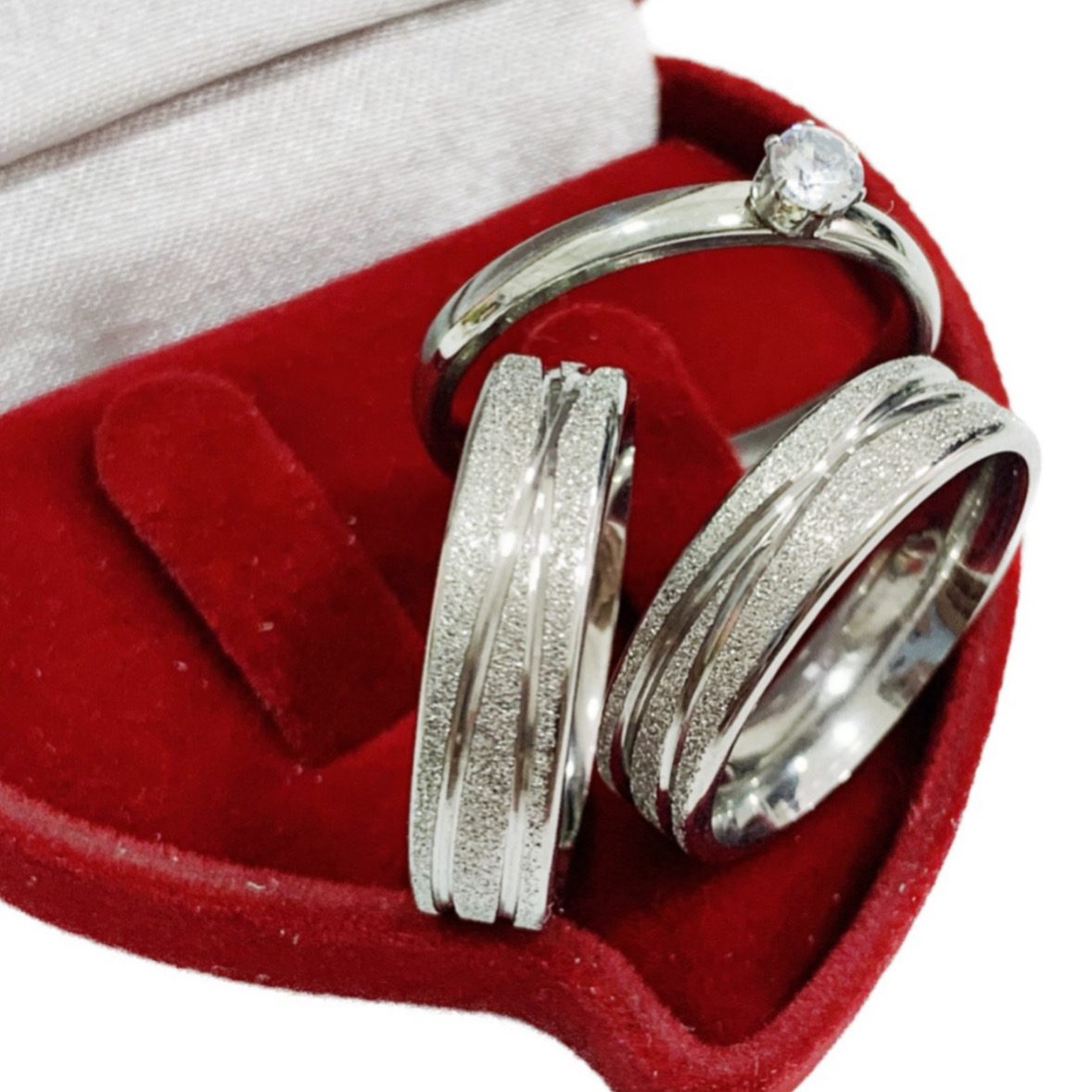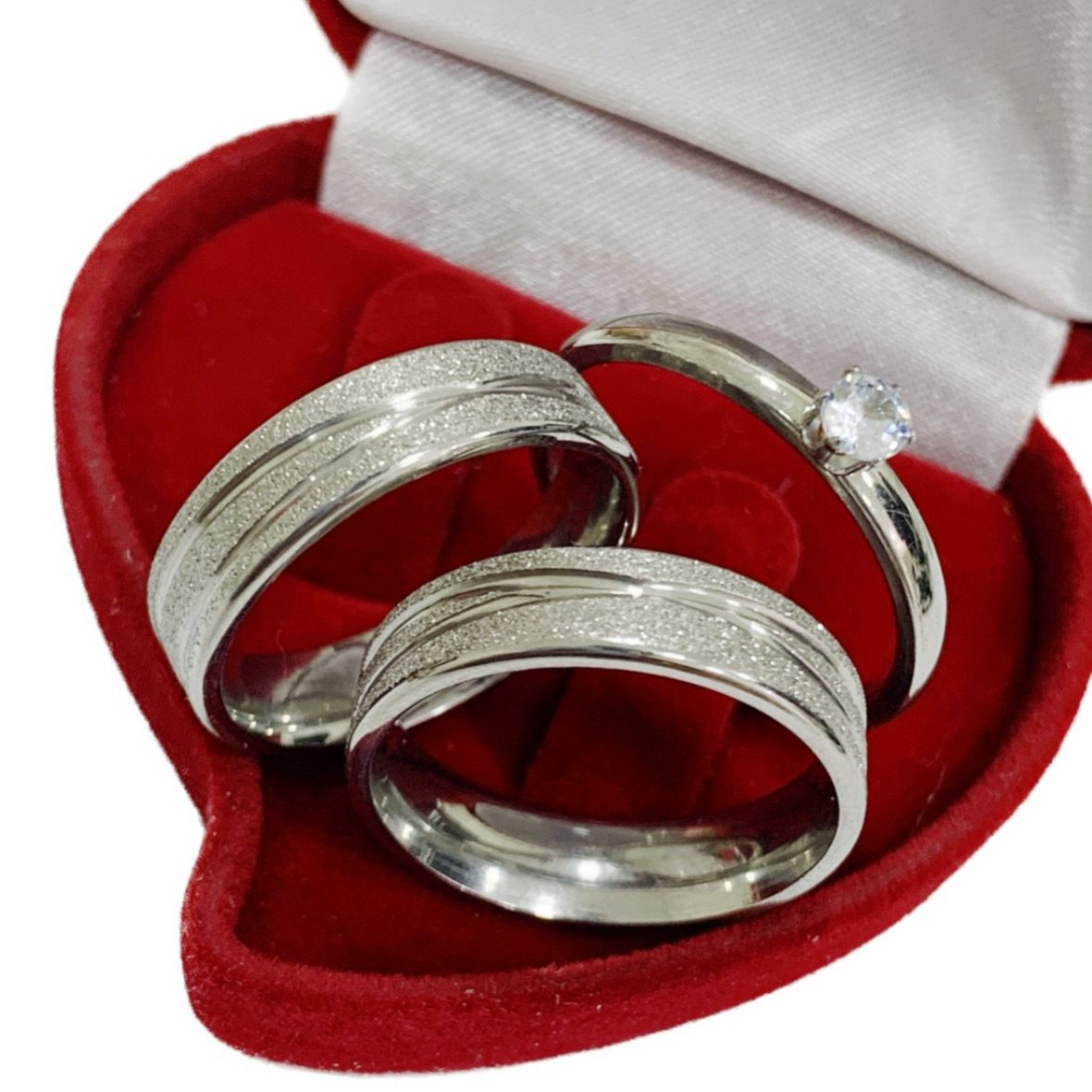 ● Par de Alianças prata em aço cirúrgico.