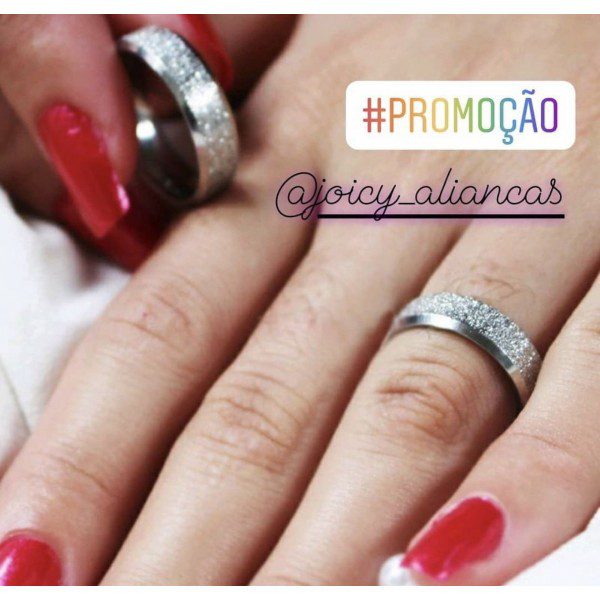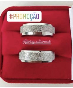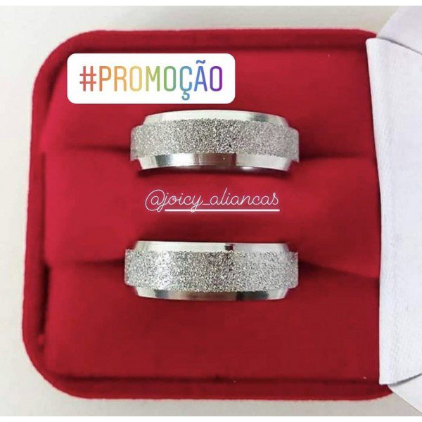 Par de alianças prata em aço cirúrgico 6mm diamantado de namoro MOD 39 – Ideal para namoro, noivado e compromisso.