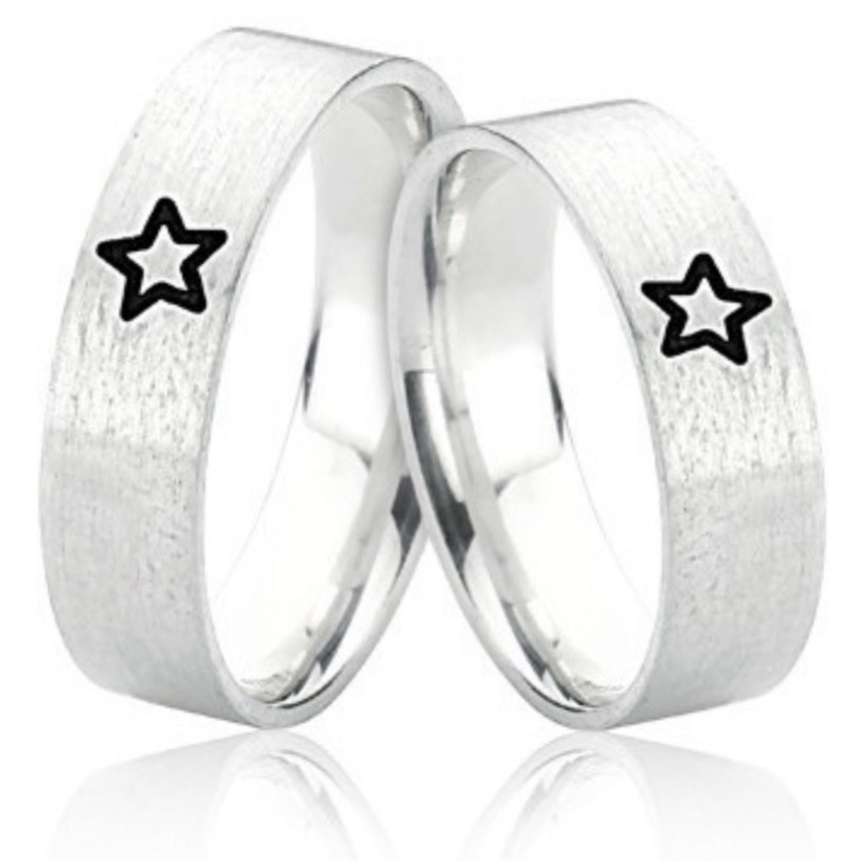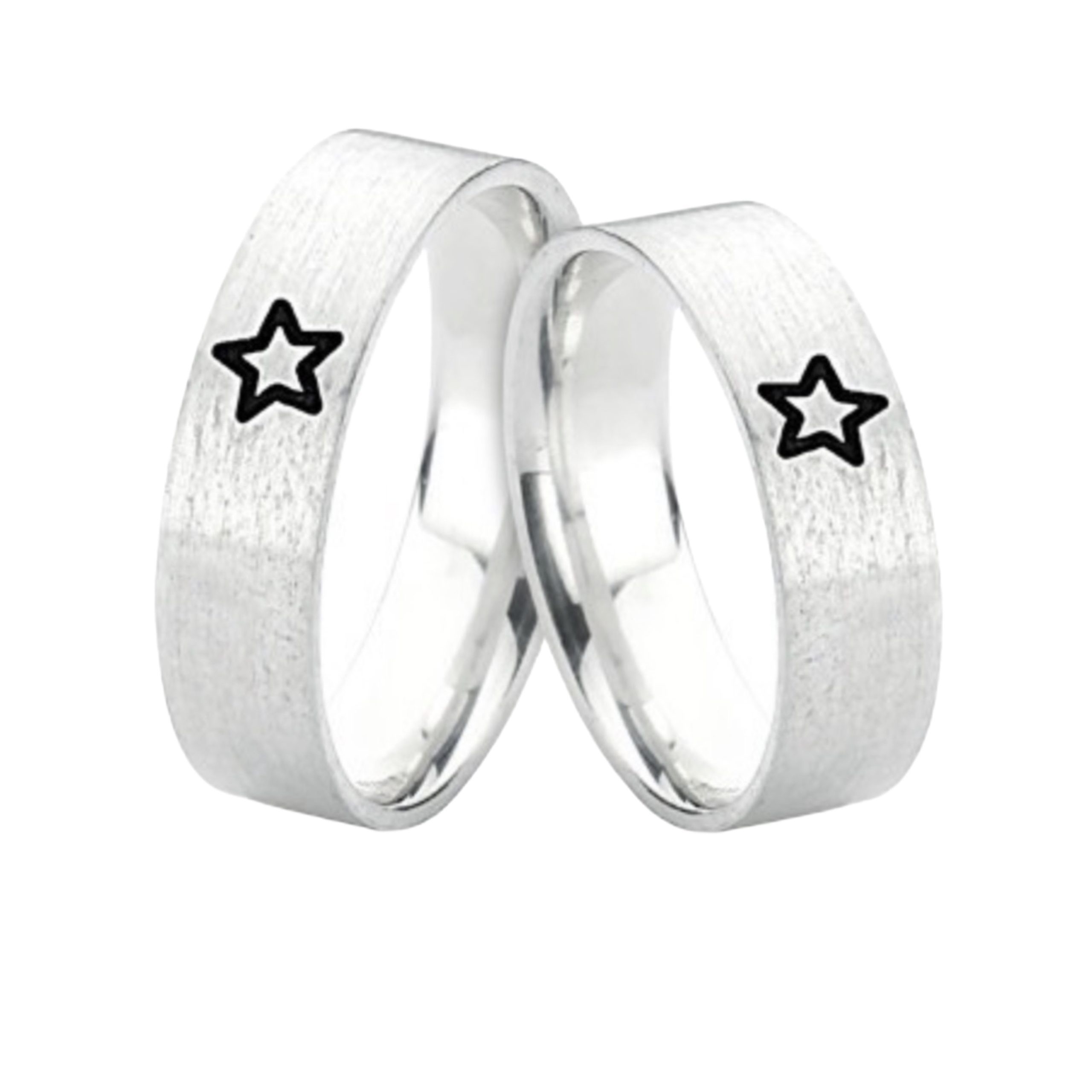Par De Alianças Prata Em Aço Cirúrgico 4mm Estrela Fosco Lixado- Ideal para namoro, noivado e compromisso.