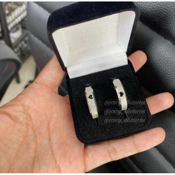 Par de alianças prata em aço cirúrgico 6mm Feminino com coração vazado diamantado- MOD 38 – Ideal para namoro, noivado e compromisso.