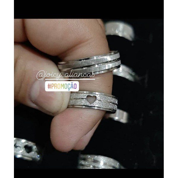 ● Par de Alianças prata em aço cirúrgico.