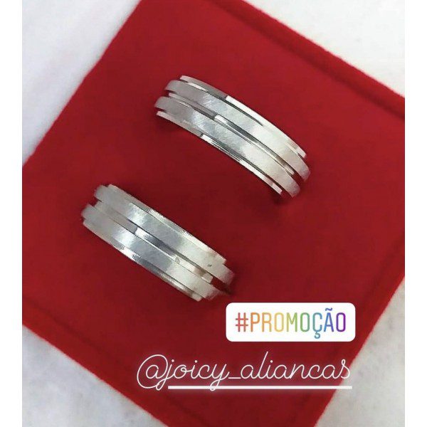 ● Par de Alianças prata em aço cirúrgico.