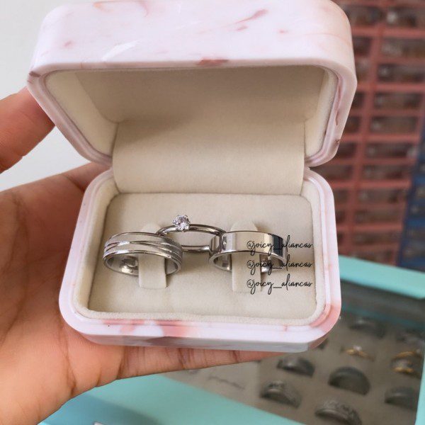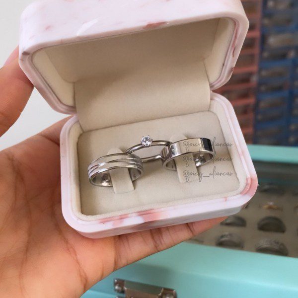 ● Par de Alianças prata em aço cirúrgico.