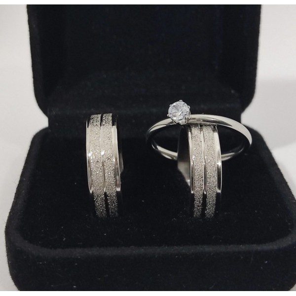 Par De Alianças Prata Em Aço Cirúrgico 6mm Modelo diamantado