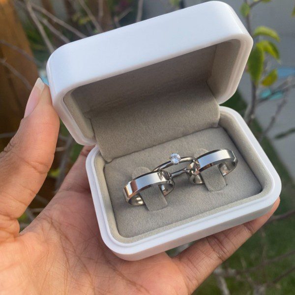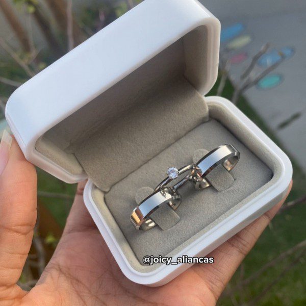 Par de alianças prata em aço cirúrgico 6mm polido chanfrado – Ideal para namoro, noivado e compromisso.