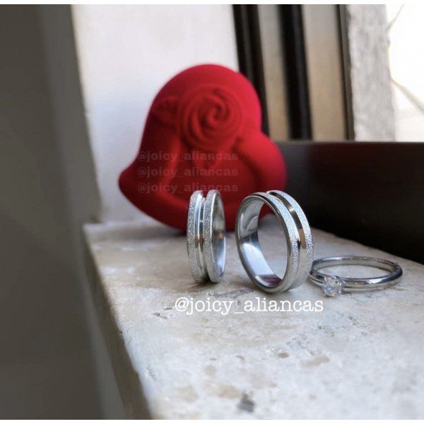 ● Par de Alianças prata em aço cirúrgico.