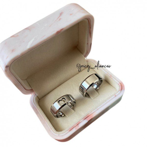 Par De Alianças Prata Em Aço Cirúrgico 8mm Com Coração
