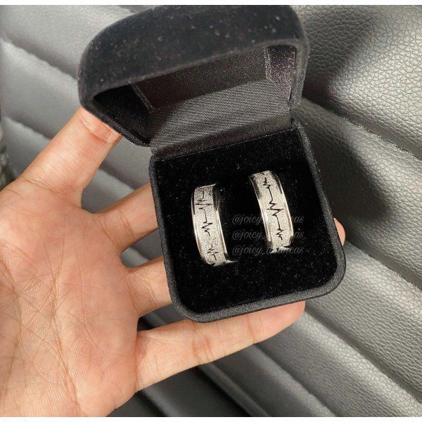 Par de alianças prata em aço cirúrgico 8mm diamantado batimentos cardíacos – Ideal para namoro, noivado e compromisso.