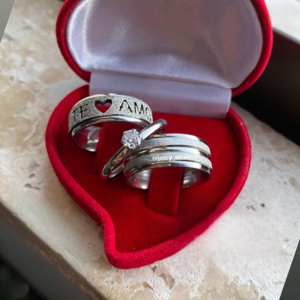 ● Par de Alianças prata em aço cirúrgico.