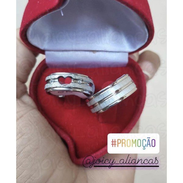 ● Par de Alianças prata em aço cirúrgico.
