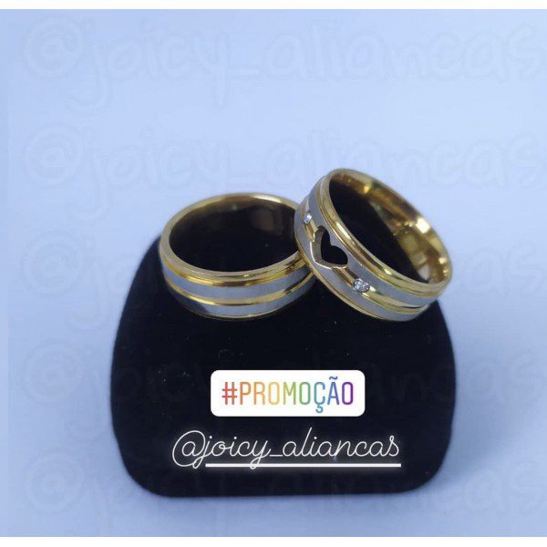 Par de alianças prata em aço cirúrgico 8mm fosco dourado com prata – Ideal para namoro, noivado e compromisso.