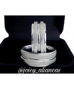 ● Par de Alianças prata em aço cirúrgico.