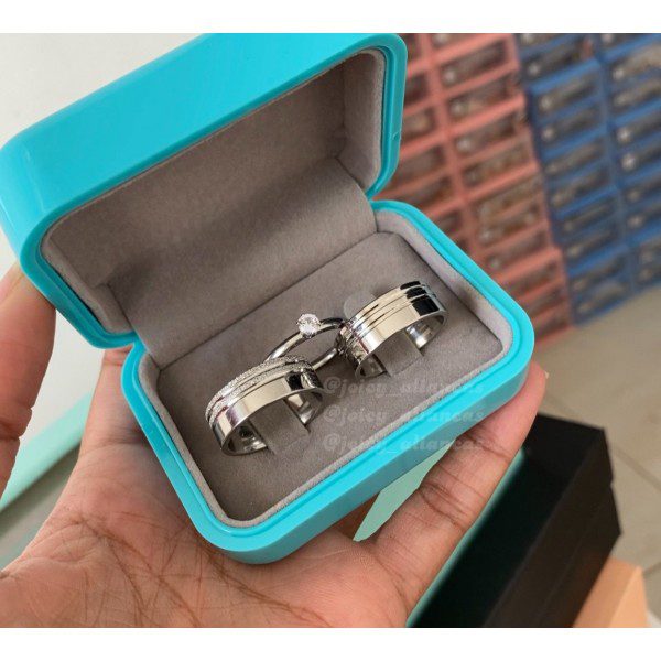 Par de alianças prata em aço cirúrgico 8mm friso diamantado com friso MOD 17. – Ideal para namoro, noivado e compromisso.