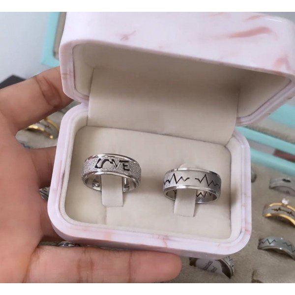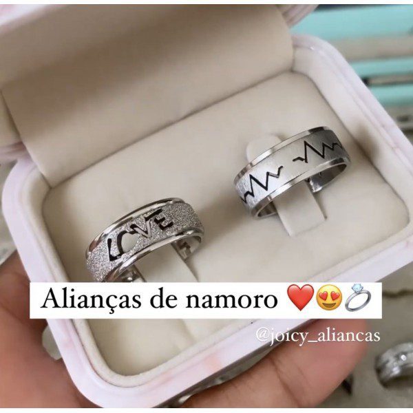 Par de alianças prata em aço cirúrgico 8mm love diamantado masculino batimentos cardíacos- Ideal para namoro, noivado e compromisso.