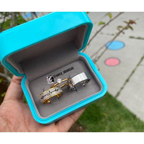 ● Par de Alianças prata em aço cirúrgico.