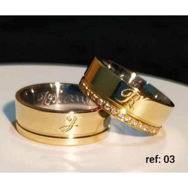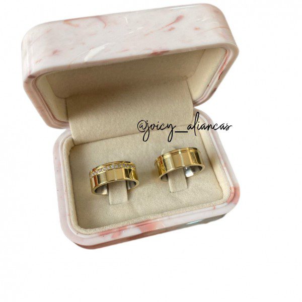 • 15 pedras de zircônia laterais na aliança feminina, proporcionando brilho e sofisticação.