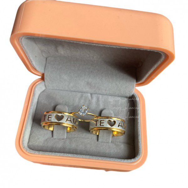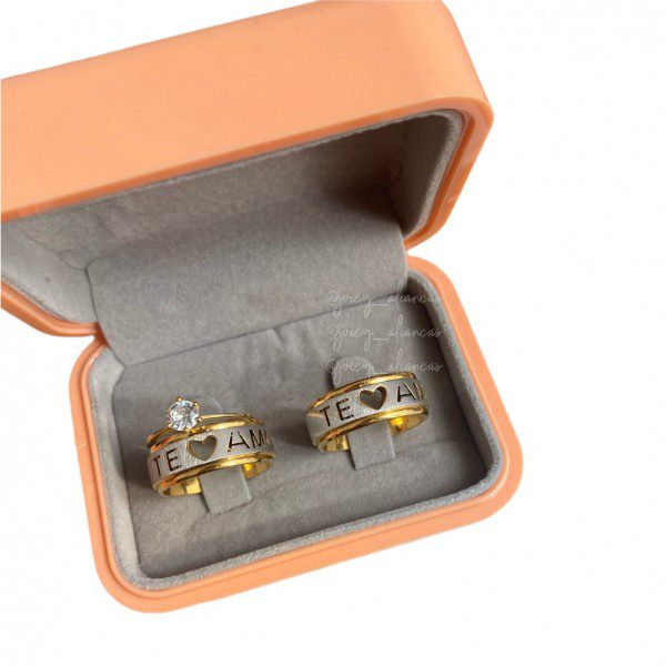 Par De Alianças Te Amo Com Banho A Ouro 18k