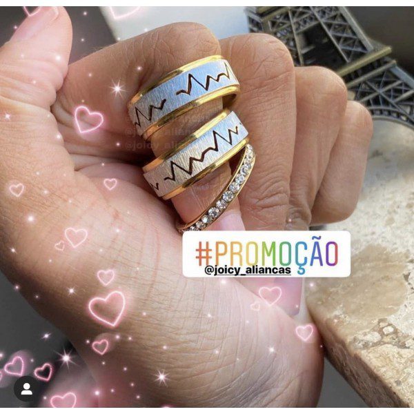 Trio De Alianças Prata Em Aço Cirúrgico 8mm Dourado Com Prata Fosco MOD 21