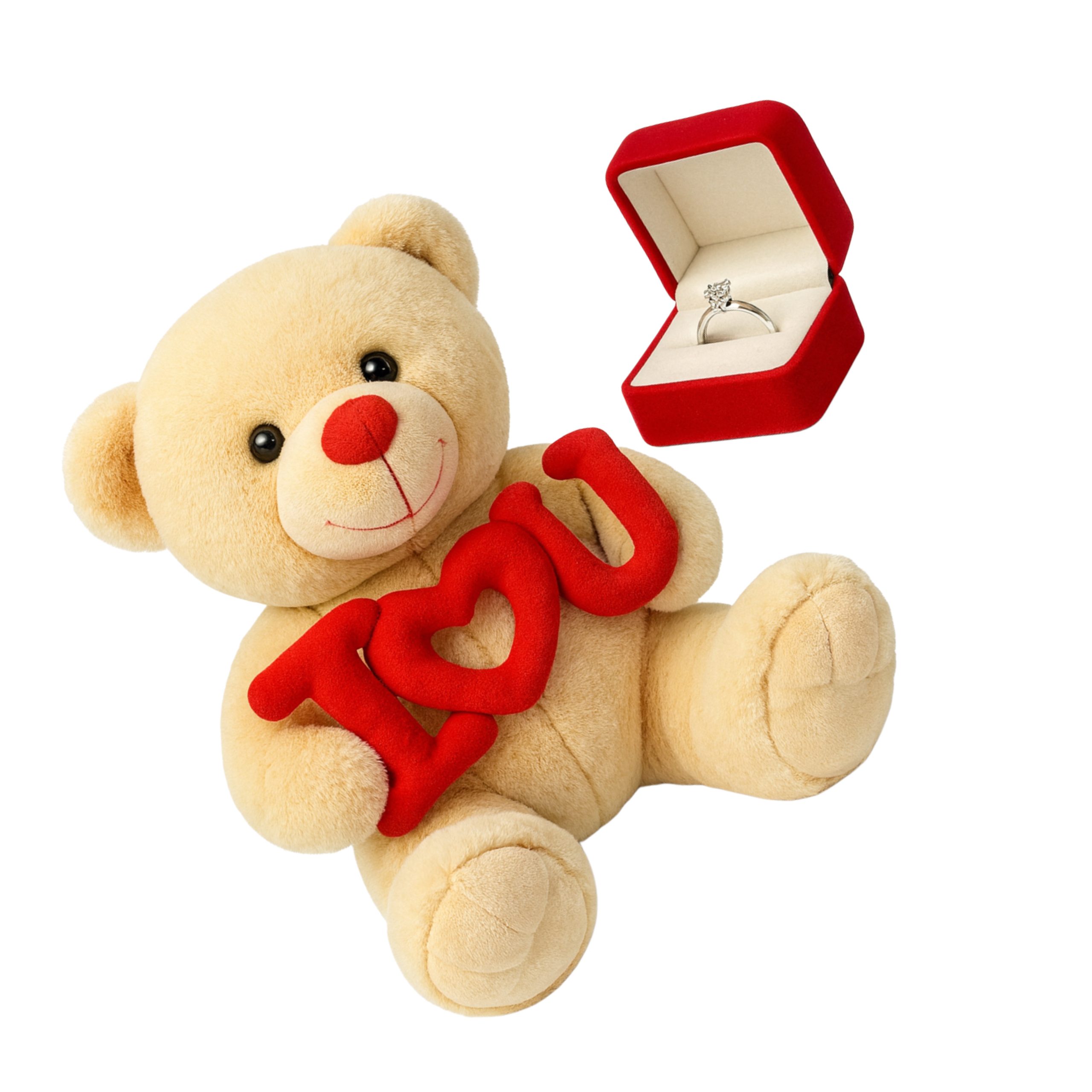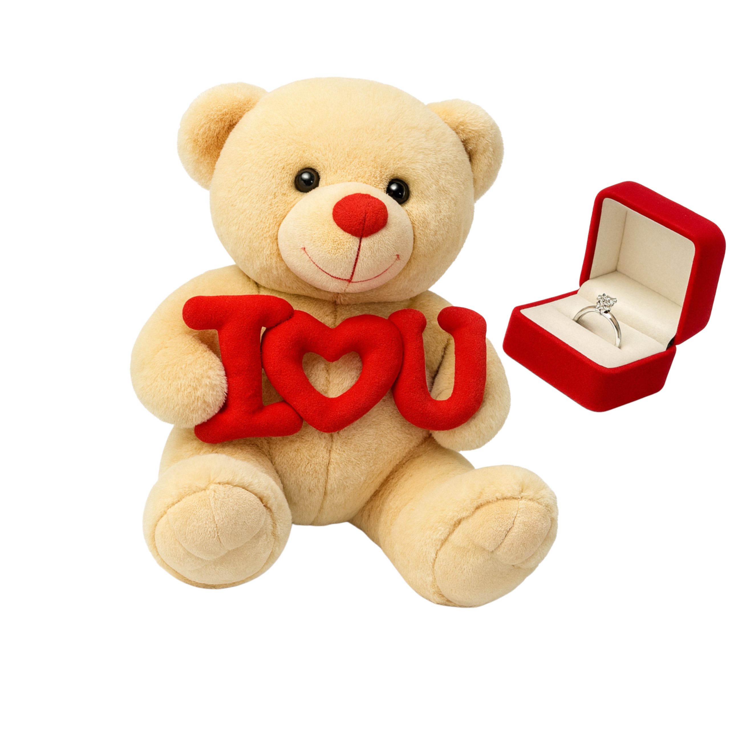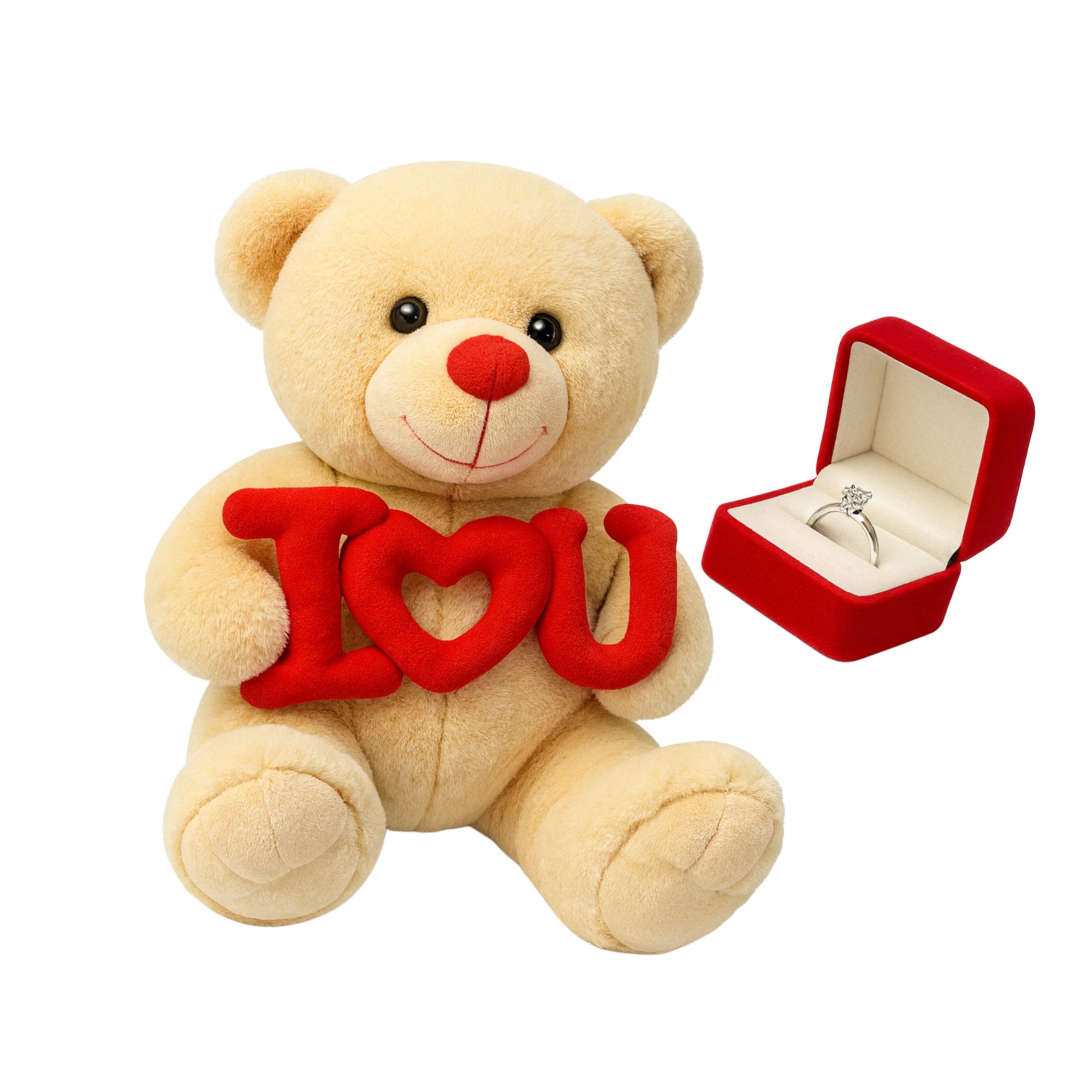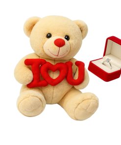 Urso de Pelúcia 25cm I Love U com Anel Solitário Prata 950 – Presente Romântico para Namorada